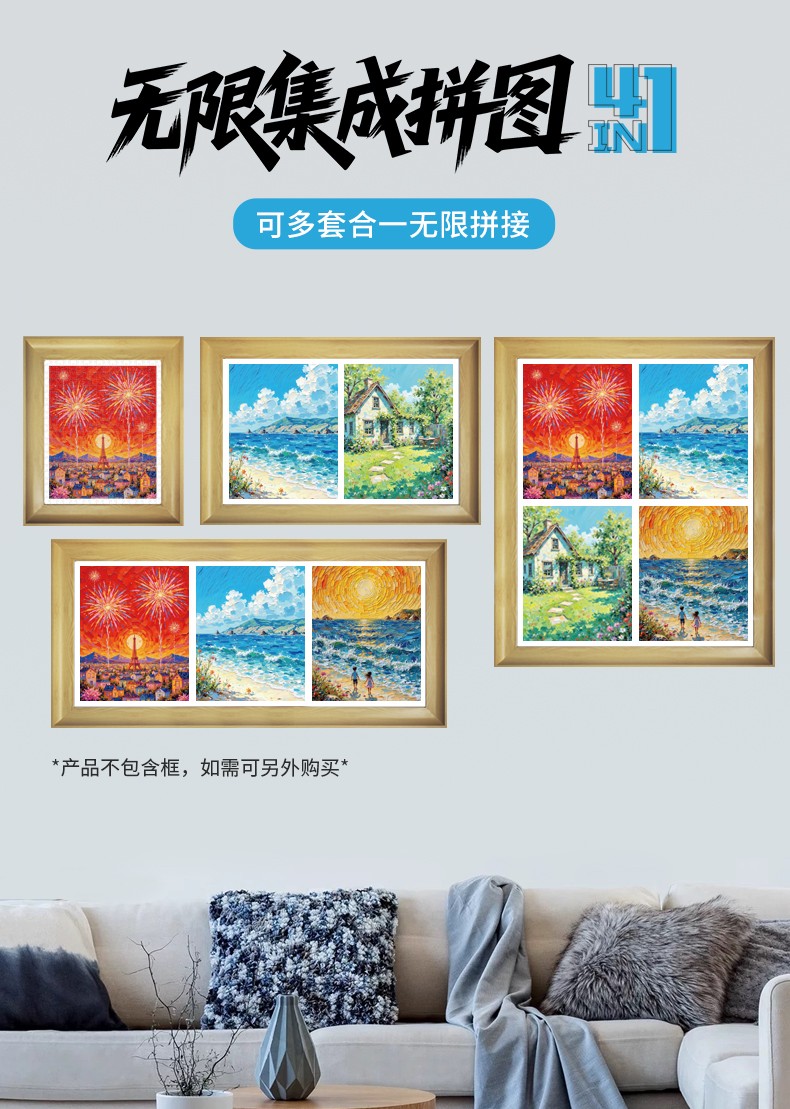 四合一塑料平面油畫拼圖