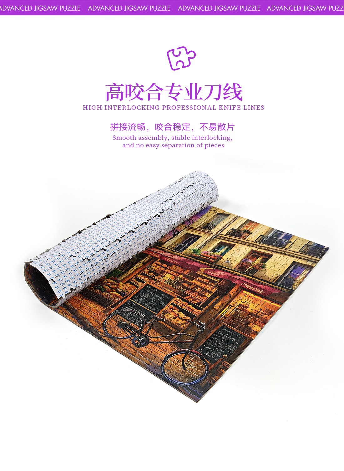 拼圖名稱:巴黎黃昏之韻 拼圖尺寸:380*260MM 拼圖片數:細微灰卡1000片 加工方式:廠規、來圖定制 包裝尺寸:180*130*50mm
